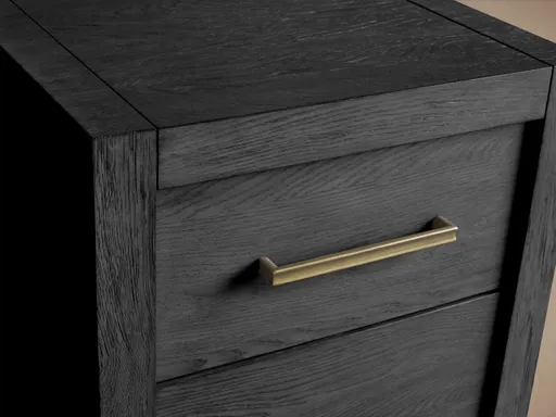 * Drawers are complemented by brass pulls.