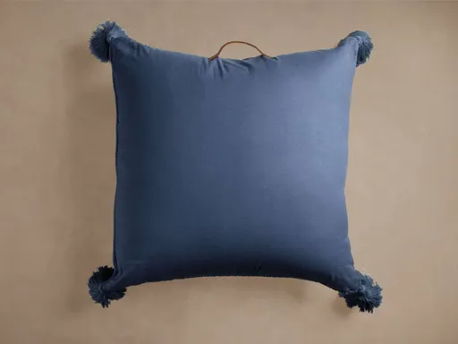 Knit by Indian artisans from cozy cotton, comfortable floor pillow adds extra seating and softness to any space. Cover knit from 100% cotton. Insert shell: 100% olefin Features a convenient leather carrying handle. Removable cover. Zip closure. Insert included.