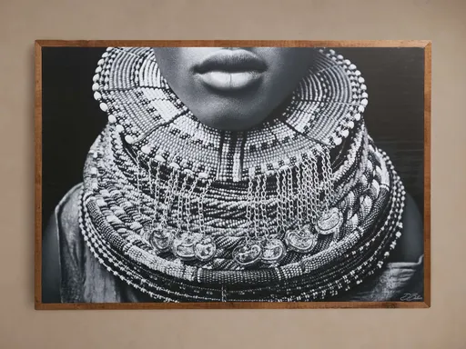 South African photographer David Ballam focuses his attention on travel and the exploration of African culture. Intrigued and inspired by new faces, places, and customs, his work transcends its landscapes and commemorates the unique beauty and character of the individuals he captures. This oversized fine art photograph is printed on canvas and framed in reclaimed pine.