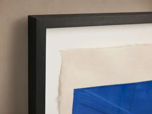 Gorgeous alone or styled as a series, Embossed Abstract features geometric shapes in space with extraordinary attention to detail. From the handmade paper to the embossed silkscreen and hand-finished shadowbox-style frame, each piece is a bold yet unique addition to any home décor. Embossing on handmade Japanese paper floating under plexiglass. Features a hand-finished espresso brown shadowbox frame. Hangs vertically from back-mounted wire. Artist: Ute Rathmann