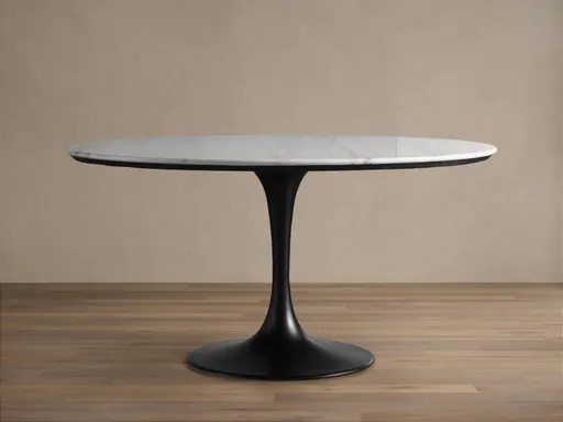 Showcasing the one-of-a-kind elegance of natural, hand-cut bluestone or white marble tabletops, our Enzo dining table collection features a sleek and modern style. Chic, transitional tulip-style table bases made from iron complement polished stone surfaces, creating a refined aesthetic that will elevate any formal or casual dining space.