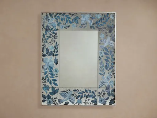 Rich with pattern and metallic luster, our Fae Mirrors transform reflections into art. Its layered glass surface reveals gilded botanicals and songbirds, evoking the collected elegance of a Parisian market find. Frame is made from engineered hardwood with sturdy tenon joinery. Mirrored glass features printed and gilded motifs. Can be hung vertically or horizontally from a back-mounted cleat. Hanging hardware included. Frame measures 2" wide. Professional installation recommended.