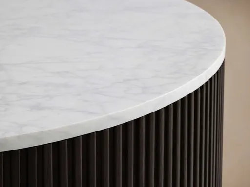 * Craftsman-built pieces are constructed from Finnish pine, oak veneers, and white marble or bluestone tops, featuring reinforced mortise-and-tenon joinery for added strength and stability.