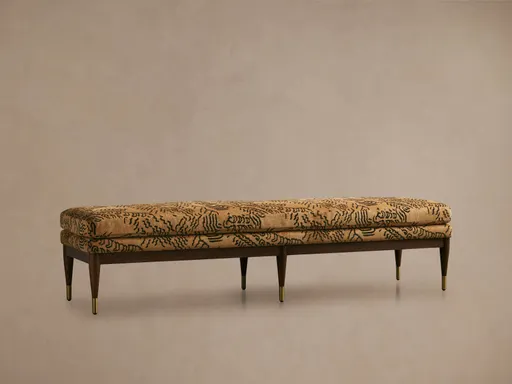 Our Fisher Bench features a uniquely shaped silhouette that offers stunning graining detail paired with brass accents. Meticulously crafted to imitate a vintage aesthetic, Fisher creates a visual interest perfect for open-seating arrangements.