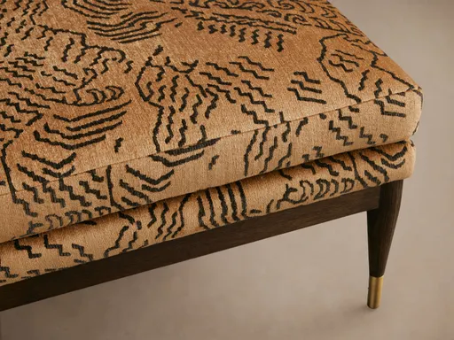 Our Fisher Ottoman features a uniquely shaped silhouette that offers stunning graining detail paired with brass accents. Meticulously crafted to imitate a vintage aesthetic, Fisher creates a visual interest perfect for open-seating arrangements.