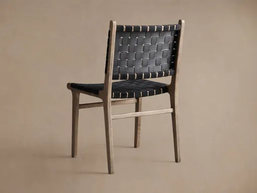 Inspired by the braided and woven patterns of artisan-made baskets, our Henry Dining Seating Collection is handcrafted by master artisans. Woven leather straps with their suede sides facing out create a unique and modern texture.