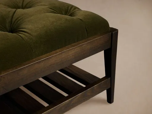 Craftsman-built, our Kent Collection adds style and function to any living arrangement. Cleverly crafted with lower shelving and optional matching trays for storage, Kent’s versatile design also offers extra seating or a place to set your drink down. Grounded on legs made from solid ash wood, Kent’s tufted, expertly tailored upholstery invites you to sit back and kick your feet up.