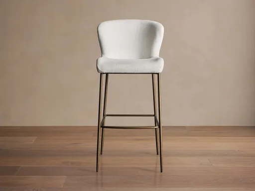 Modern with comfort to match, the sculpted silhouette of our Kirsten Dining Barstool features an elegant scoop seat and gently curved backrest. Upholstery covered in Crypton® Home Performance Fabric is soft yet durable enough to withstand daily use, and a minimalistic iron frame features a chic antiqued finish.