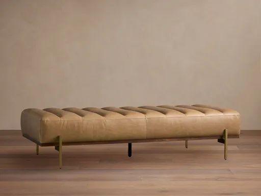 Crafted for exquisite comfort, our Lansing Collection features low-profile, open-ended designs. Upholstered top-grain leather benches are channel-stitched to create a plush, luxurious aesthetic, while the natural wood bases are accented with brass supports for added style and contrast.
