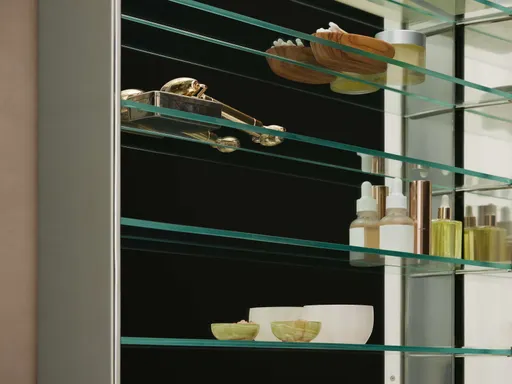 Frame is made from stainless steel with a black, brass, or nickel finish. Hangs vertically from a back-mounted cleat. Hanging hardware included. Frame is 4mm wide. Medicine cabinets are right-hinged and feature adjustable shelving inside. Arhaus bathroom mirrors are crafted from materials that are resistant to corrosion and bacteria; our bathroom mirrors have been tested and made suitable for high humidity and high moisture environments. Professional installation recommended.