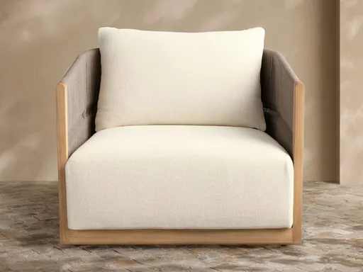 This collection is crafted from sustainably harvested Grade-A teak wood, selected for its natural beauty and durability. Performance Weave polyester rope is handwoven around the aluminum frames by our artisan partners in Indonesia—selected for its textural appearance and all-weather durability. Polyester rope is meticulously designed with intricate yarns and handwoven onto aluminum frames to form a stunning linear pattern. Manadala’s premium natural teak hardwood curated by Arhaus is untreated and unfinished; its organic color tones are honed by finely sanding into a smoothed surface. Natural teak highlights organic variations in color and graining. These characteristics may differ between pieces. Natural teak may display small splits, knots, joint lines, or other features, adding character to your piece without affecting its quality or performance. Teak hardwood contains natural oils that repel insects, prevent drying, and resist moisture. Teak is also resistant to fungal decay, rotting, and warping due to temperature or humidity. Over time, natural teak’s warm, golden color eventually fades to a silvery-grey patina. Weathering will begin immediately when left uncovered and in daylight. Features a powder-coated aluminum swivel base for effortless movement. Engineered to withstand the elements, Manadala’s cushions are crafted with open-cell, quick-dry foam wrapped in recycled poly fibers, with mesh bottom panels for efficient drainage and air circulation. Seat and back cushions feature a removable casing for easy maintenance and cleaning. Partnering with our same top Italian mills as our indoor collections, our Tierro Ivory performance fabric is made from durable-yet-soft yarns from Italy, which are anti-mildew and eco-friendly. Protect your outdoor furnishings with resilient Agora® covers specifically tailored to fit Arhaus outdoor collections. Call, email, or live chat with our Design Team for details.
