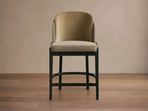 Frames handcrafted by Italian artisans are built from solid ash wood and feature hand-applied finishes. Layered backrest design features two complementing fabrics for added depth and dimension. Tapered legs wrap elegantly around the chair back, showcasing artisanal detailing from every angle.