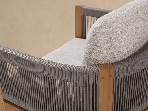 Minimalist modern design meets sophisticated soft curves in our Newport Outdoor Collection. Featuring natural teak frames enhanced by intricate linear patterns made from handwoven all-weather polyester rope, Newport brings textural warmth and a beautiful juxtaposition of mixed materials to any outdoor space.
