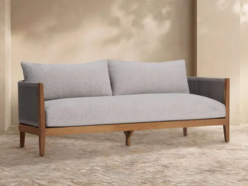 Minimalist modern design meets sophisticated soft curves in our Newport Outdoor Collection. Featuring natural teak frames enhanced by intricate linear patterns made from handwoven all-weather polyester rope, Newport brings textural warmth and a beautiful juxtaposition of mixed materials to any outdoor space.