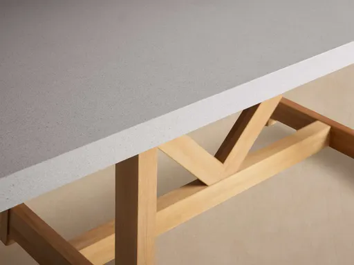 Inspired by traditional sensibilities and enduring resilience, our sintered stone and concrete outdoor tabletops are finished in naturally varying colors to create a custom look and memorable space that complements your signature style. Designed to pair with your tabletop beautifully, our traditional French Beam base is crafted from natural teak that complements the natural tones of the stone tabletop.
