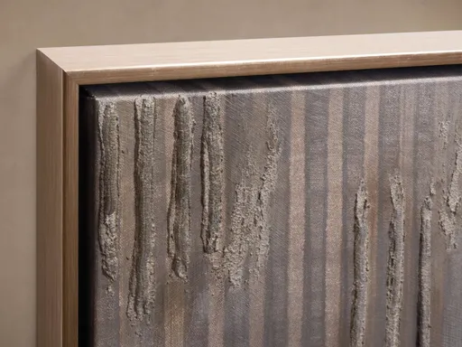 Inspired by travels on the mediterranean, Peak of Light is an abstract study reminiscent of a city’s reflection on water. Award-winning author, international designer, artist, and design psychology expert Kelli Ellis celebrates her love of art and design through many artistic endeavors including original artworks, teachings and publications, and television shows on HGTV, Hulu, and more. Gallery-wrapped giclee print on canvas with hand-applied acrylic gel details. Features a silver-finished polystyrene frame. Hangs vertically or horizontally from back-mounted D-rings. Artist: Kelli Ellis