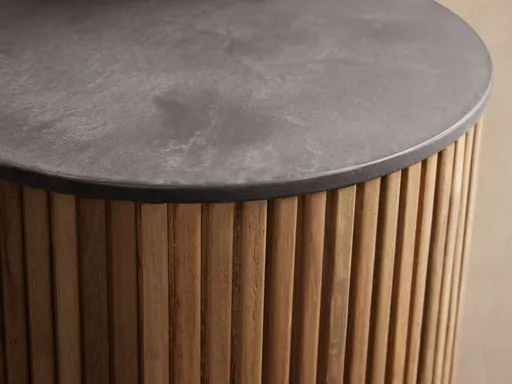 Boasting gorgeous vertical reeded detailing and contrasting charcoal-hued tops, our Pompeii Outdoor Collection will add a touch of organic warmth to your space. Rounded golden honey-toned bases are handcrafted from premium reclaimed natural teak that is untreated, unfinished, and finely sanded to achieve a smooth surface while preserving the wood’s natural graining and unique features.