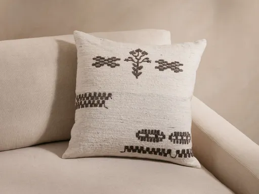 Embroidered with charming geometric motifs by our artisan partners in India, our Riad Pillow Cover features a neutral background and bold designs to accent your home. Front is crafted from 100% cotton with wool embroidery; pillow cover back is 100% linen and interior lining is 100% cotton. Pillow cover features hidden zip closure and knife edge detail. We recommend pairing this pillow cover with our 24" x 24" Decorative Pillow Insert (CORE24). Please note that the insert we recommend to pair with this pillow cover is sized slightly larger than the cover itself for a full, plush look. Crafted in India.