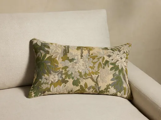 Woven in shades of deep blue, earthen rust, and forest green, our Sagamond Pillow layers rich botanical motifs that bring the warmth and depth of nature into your home. Crafted from an 84% polyester, 14% olefin blend. Removable pillow cover features a hidden zip closure and knife edge detail. Included pillow inserts are generously filled with 95% feather and 5% down, enclosed in a 100% cotton cover. All down is sourced from a Responsible Down Standard Certified supplier, ensuring that the down is from ethically raised ducks and geese. Woven, cut, and sewn in America from globally sourced materials. Each pillow cover will vary in color saturation and tonality, making yours a one-of-a-kind piece.