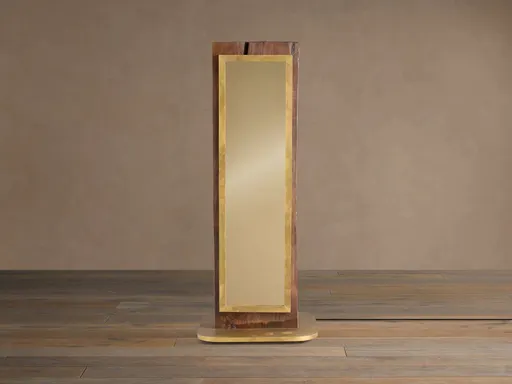 Inspired by sculptural wood beams and the character of wooden structures, our Vigas Sculptural Floor Lamps blends rustic charm with contemporary refinement. Each one-of-a-kind lamp features natural hand-carved wood with modern brass and mirrored glass accents, creating a unique statement piece that’s sure to be a conversation starter in any space.