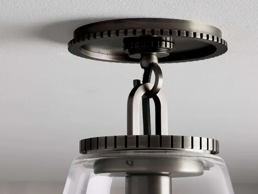 Crafted from steel in either a brass or bronze finish with your choice of a clear or milk glass cone. Uses one 60-watt max E26 bulb (not included). Can be mounted on a vaulted ceiling. PVC and copper cord wrapped in black fabric measures 6" long. Canopy measures 5.5" diameter x .5" high. Small cone shade measures 12" diameter x 8" high. Medium cone shade measures 14" diameter x 16" high. Large cone shade measures 20" diameter x 9.25" high. Hardwired; professional installation recommended. Mounting hardware included. ETL Certified Damp.