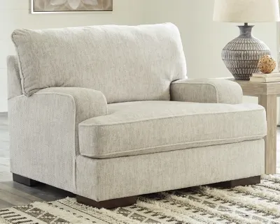 Decidedly modern with a sense of relaxed ease, the Alesandra oversized chair looks at home in so many different places and spaces. Providing a highly distinctive look: substantial track arms with curved cornering, wrapped t-cushioning and low-to-the-floor block feet in a warm wood-tone finish. Sporting a subtle chevron texture, the parchment-tone upholstery takes neutral to new heights.