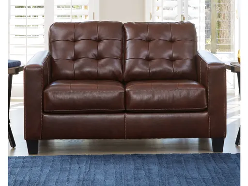 Tailor your space with the tidy structure of the Altonbury loveseat. Decorative stitching and button tufting on the box cushion make for a very neat appearance. With combination leather and faux leather upholstery, this piece prioritizes luxury at a price you can afford.