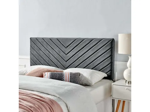 Update your bedroom with elegant decor with the Alyson Full/Queen Chevron Tufted Performance Velvet Upholstered Headboard. With a squared profile, this full/queen headboard grants a luxurious presence to your bedroom with chevron pattern tufting accents and rich texture. Covered in soft, stain-resistant performance velvet upholstery Alyson Queen/Full Headboard is both practical and graceful. Ideally suited for guest rooms, teen, and master bedrooms, the Alyson Full or Queen Headboard is made from solid wood and particleboard and features dense foam padding for luxe comfort when reclining, reading, or watching TV in bed. This upholstered headboard fits most full or queen size beds and has three height-adjustable positions for customization.