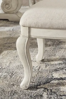 Add a touch of romance to your home with the Arlendyne dining chair. Its antiqued white painted finish and shapely silhouette are all about easy elegance. This graceful chair, with a cushioned back and seat and cabriole-shaped front legs, adds a dash of sophistication and upscale luxury to the dining experience.