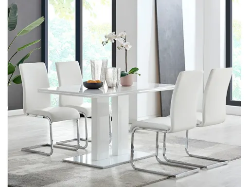 The Armen Living Amanda 5-piece dining set is both simple but elegant look that will complete any contemporary style dining room. The 5-piece set includes: The Amanda dining table, and 4 faux leather dining chairs. The table has sleek metal base, complimented with a beautiful white MDF top. The Amanda dining chairs are complimented with soft faux leather upholstery for optimum comfort. The Amanda set is practical, yet highly appealing, making it the ideal combination for any contemporary dining room. We stand by the quality, the craftsmanship and the integrity of our product by offer 1-year warranty for all our products.