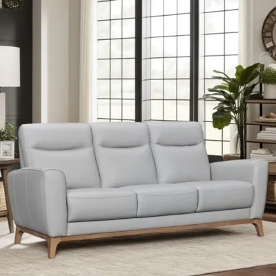 Elevate your living space with the Greyson 83" leather upholstered sofa from Armen Living—a fusion of modern sophistication and luxurious comfort. This impeccably designed sofa is the perfect centerpiece for your home, seamlessly combining chic aesthetics with unparalleled relaxation. Available in both serene dove gray and classic black leather upholstery, this couch offers a sleek, modern design that's both visually captivating and incredibly comfortable. The minimalist wood base and legs elevate its profile, creating an open and spacious feel. Measuring a generous 83 inches in width, the Greyson sofa provides ample seating for up to three. Whether you're hosting a movie night, entertaining guests, or simply relaxing, this sofa offers plenty of room for everyone to enjoy. Sink into its plush cushions and experience the unparalleled comfort. Leather upholstery adds timeless elegance to any interior. Whether your decor is contemporary or traditional, the Greyson's rich leather complements any style effortlessly. The webbing system ensures flexible and consistent support throughout the seating area, reducing pressure points and ensuring a comfortable sitting experience. Say goodbye to sagging cushions—the Greyson sofa maintains its shape and support for years to come. Whether you're unwinding with a book, hosting guests, or simply enjoying a moment of relaxation, the Greyson sofa offers the ultimate blend of sophistication and comfort for modern living.