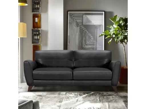 The Armen Living Jedd black contemporary genuine leather sofa is a sophisticated choice for any modern household. The plush back and seat of the Jedd is padded with Dacron, assuring that the genuine cowhide leather upholstery remains crack and wrinkle free while also providing an exceptional degree of comfort. The Jedd's legs are made of durable hardwood and their beautiful brown wood finish complements the leather fabric without detracting from the quality of the Jedd's construction. Sleek, stylish, and immaculately designed to deliver a perfect coupling of durability and relaxation, the Jedd is a wonderful choice for any contemporary home. For a cohesive living room aesthetic, consider pairing the Jedd sofa with the accompanying loveseat and chair. This piece provides both style and function with eye-catching sleek and smooth black leather that can easily be integrated into your home's existing decor. The plush and thick cushion with high density foam will provide you with all day comfort. The medium high back cushion is ideal for posture alignment and unmatched support for days on end. This product ships in one box and comes fully assembled and hassle free. We stand by the quality, the craftsmanship and the integrity of our product by offering a 1-year warranty for all our products. We want our customers to enjoy our product and we will always be there to help with our top-notch customer service support. Excellent choice for a modern, mid-century and even contemporary living space. Product dimensions: 82"W x 36"D x 35"H SH: 20". Seat dimensions: 66.1"W x 20.8"D x 19.6"H. Arm height: 22.1"H. Leg height: 5.1"H.
