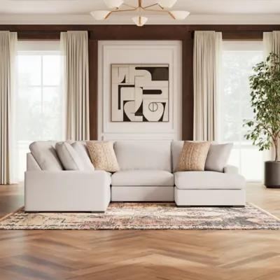 A tailored approach to enduring comfort and versatility. The Calden sectional with chaise unites a sculptural silhouette with soft oyster white boucle to create the essence of quiet sophistication. It elevates your space while creating a genuinely inviting centerpiece for your home.