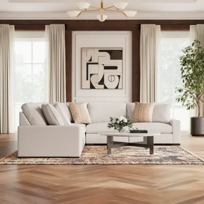 A tailored approach to enduring comfort and versatility. The Calden sectional unites a sculptural silhouette with soft oyster white boucle to create the essence of quiet sophistication. It elevates your space while creating a genuinely inviting centerpiece for your home.