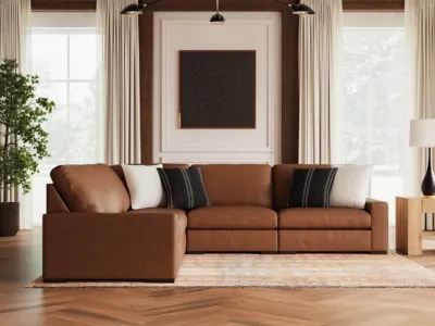 $1,895.00Living Spacesaraceli ii taupe beige brown vegan faux leather 4 piece sectional with right arm facing chaise | fabricSaveAdd to List