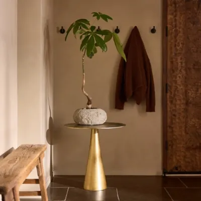 Elevate your interior with the sleek sophistication of this glam modern accent table, expertly crafted from durable aluminum and metal for lasting strength and stability. Ideal for home, living room, bedroom, or office use, this versatile table brings both function and flair to any space. Its bold silhouette adds a touch of luxury while complementing a variety of contemporary and transitional decor styles. The sturdy construction ensures a reliable surface for your favorite decor, beverages, or reading materials, making it a functional statement piece. Whether used as an end table, side table, or stylish perch for accent lighting, its refined aesthetic enhances everyday spaces effortlessly. This stylish piece is perfect for those seeking easy updates that maximize impact with minimal effort. Make a statement while solving your style and practical needs with this eye-catching accent table. Add it to your cart now and bring home a touch of modern elegance.