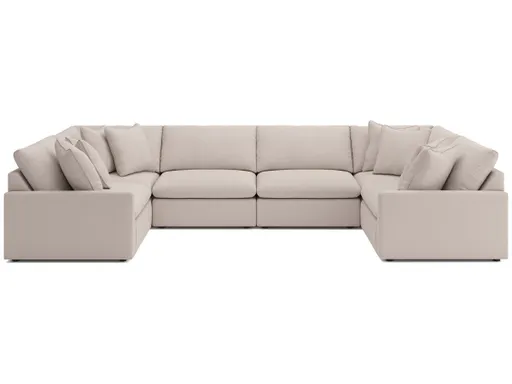 Bring home comfort rich in character with the Whitehaven sectional. Oversized plush cushions keep things comfy for enjoying family time, hanging with friends or catching up on the latest TV. Its modular design easily adapts to your space, while the neutral hue pairs with a variety of color palettes. And with a yarn boucle fabric adding eye-catching visual texture, this modular sectional is invitingly refined.