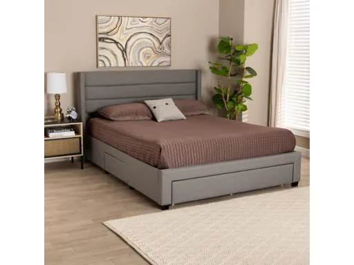 Baxton Studio Braylon Queen Panel Platform Bed with 3 Storage Drawers