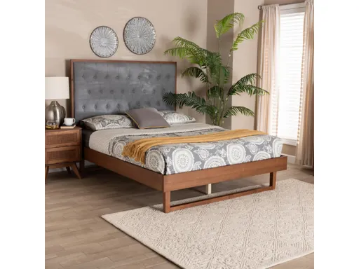 Combining cozy design with classic luxury, the Bryn platform bed is a remarkable bedroom centerpiece. Made in Malaysia, this traditional piece is crafted from sturdy wood. The broad, rectangular headboard is padded with plush foam and upholstered in soft fabric for a cozy display while button-tufted adornments evoke timeless grace. The Bryn requires assembly and utilizes wood slats for mattress support, eliminating the need for a box spring. The crisp outline of the legs completes the look, making the Bryn platform bed a fantastic fixture of any bedroom.