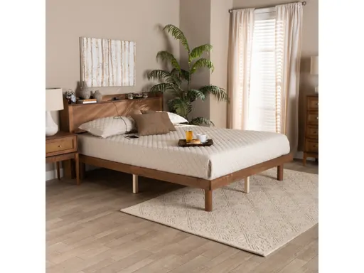 The Decker platform bed expertly balances the needs of the modern world with traditional artistry. Made in Malaysia, this versatile piece consists of a solid wood frame featuring a low platform. The headboard is conveniently fitted with a charging station containing two USB ports and two outlets to accommodate modern needs. The Decker requires assembly and utilizes wood slats for mattress support, eliminating the need for a box spring. A modest yet transformative addition, the Decker platform bed brings classic design to the modern age.