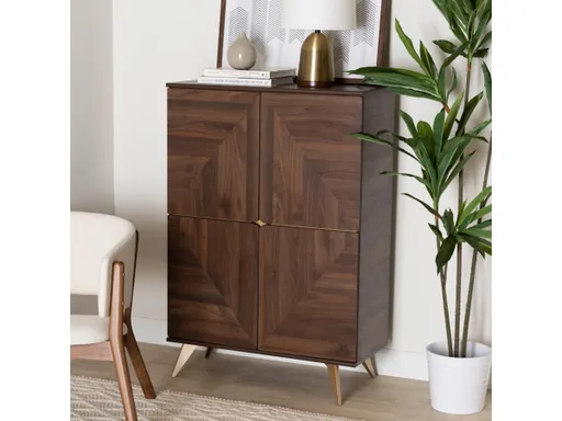 Uncover a quality of rustic tenderness in your space with the lovely Graceland shoe cabinet. Made in Malaysia, this mid-century inspired piece consists of a sturdy wood frame exhibiting a vibrant grain design. The doors open to reveal six shelves capable of organizing 18 pairs of shoes, depending on size. The Graceland requires assembly and utilizes angled legs for excellent stability and support in expressive design. Handleless doors accentuate the striking geometry of the piece, making the Graceland shoe cabinet an outstanding fixture of any arrangement.