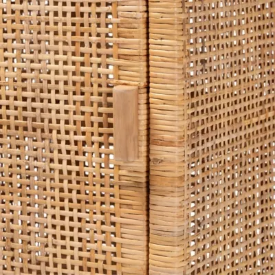 Bring the allure of a tropical haven to your bedside with the remarkable Vivan nightstand. Made in Indonesia, this handy piece is comprised of a sturdy mahogany wood frame wrapped in natural rattan. Two shelves behind the door provide space to organize bedside essentials and reserve the tabletop for nightly use. The Vivan will arrive fully assembled and features woven rattan embellishments for a light, airy display that lends a more open feel in tight spaces. A wonderful combination of style and convenience, the Vivan nightstand enhances any bedroom layout. Due to the nature of the natural materials used in this product, it may have variations in areas such as, but not limited to, color, pattern, grain and texture. The hair-like strands of rattan/rattan-fiber are common due to nature of the material.