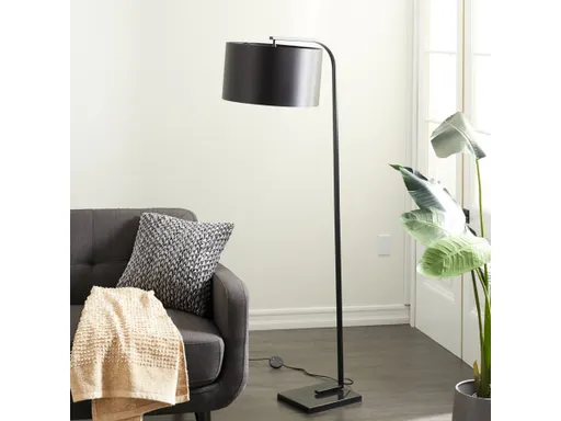 Brighten up any room to create a warming atmosphere for you and your guests with this chic floor lamp. Make a statement with this unique floor lamp on any surface space for a balanced look. Set this black floor lamp in a corner of your living room or study for accent lighting. Requires 1 60W Type A E26/Medium (Standard) bulb. This item ships in 1 carton. Comes with a 71" cord length. Suitable for indoor use only. This item ships fully assembled in one piece. Floor lamp comes with a black drum shaped shade that measures 17 x 17 x 10 inches. Includes a foot step switch. Marble is a product of nature and no two pieces are exactly alike. It is prone to variations in color and/or patterns in the material that add to the beauty and charm of the piece. This is a single black colored standing tall lamp. Traditional style.
