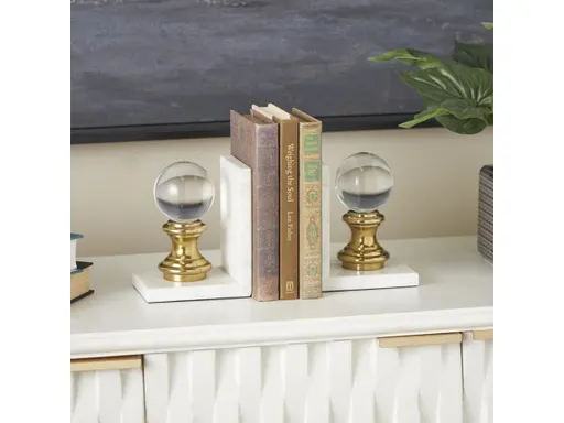Contemporary bookends 2-piece set is ideal for organizing books on a shelf or desk, they not only serve a practical purpose but also add style to your space. This item ships in 1 carton. Marble bookends make a great gift for any occasion. Suitable for indoor use only. This item ships fully assembled in one piece. Marble is a product of nature and no two pieces are exactly alike. It is prone to variations in color and/or patterns in the material that add to the beauty and charm of the piece.. Made in India. This white colored marble non skid bookends comes as a set of 2. Contemporary style.