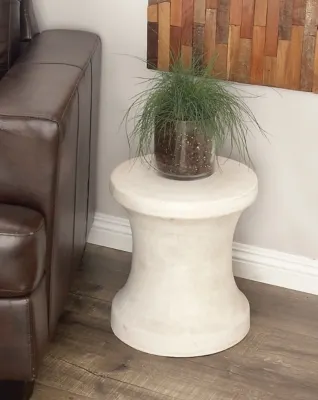Add vibrant colors and playful shapes to your garden setting this trio of accent tables for a refreshing appeal. This item ships in one carton. Suitable for indoor and outdoor use. This item ships fully assembled in one piece. Maximum weight limit is one hundred and fifty pounds.. This is a single white patio table. Contemporary style. Poly cement carries a durable and lightweight nature and is impervious to changes in weather.