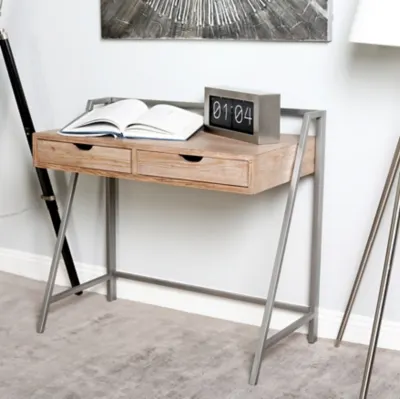 Keep your work table space organize and chic with this spacious work desk. Ideal for office work and school with slender look for compact friendly spaces. The rectangular tabletop is a suitable work area for school homework and office work. It can also hold laptops and desktop computers. This item ships in 1 carton. This modern metal desk features 2 drawers measuring 15"L x 17"W x 3"H. Suitable for indoor use only. Maximum weight limit is 100 lbs.. Modern Design.