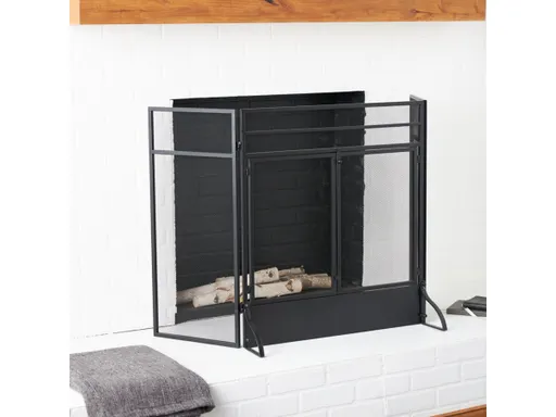 Place this geometric fire spark guard as both a protective cover and an ornamental piece in your living room's empty spaces. This item ships in 1 carton. Please note that this item is for decorative use only. Suitable for indoor use only. This item ships fully assembled in one piece. Item features 3 panel screens. This is a single black colored fire spark guard. Modern style.
