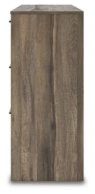 Casually cool style and lots of storage go hand in hand with the Baystorm dresser. A weathered brown finish over replicated oak grain creates an easygoing vibe, setting the scene in your restful retreat. Clean lines and modern handles provide a fuss-free look. And the dresser's six roomy drawers give you plenty of space for stowing away clothes and more.