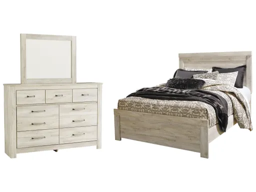 Gorgeous and modern, the Bellaby bed, dresser and mirror express your farmhouse style. Wispy white finish over replicated oak wood grain infuses so much character for a weathered, rustic look you’ll love. Clean-lined, classic panel styling provides a country-chic bedroom retreat that’s a breath of fresh air and provides the perfect foundation for an inviting space.