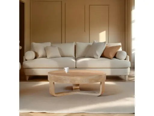 The solid wood Milan sandblasted natural brown finish craftsmanship and sleek curves lend this coffee table a contemporary organic look that effortlessly blends timeless elegance with modern style. A generously sized round tabletop gracefully reveals the rich, natural grain of the wood, ensuring that each piece is uniquely captivating. A true testament to versatility, this piece is thoughtfully designed to complement a wide range of interior styles, from mid-century modern and transitional to the enduring appeal of classic traditional decor. As a stunning focal point for your living room, it offers generous space for books, beverages, or light bites and appetizers, all while being supported by a striking crossed sled base that adds a touch of bold sophistication.